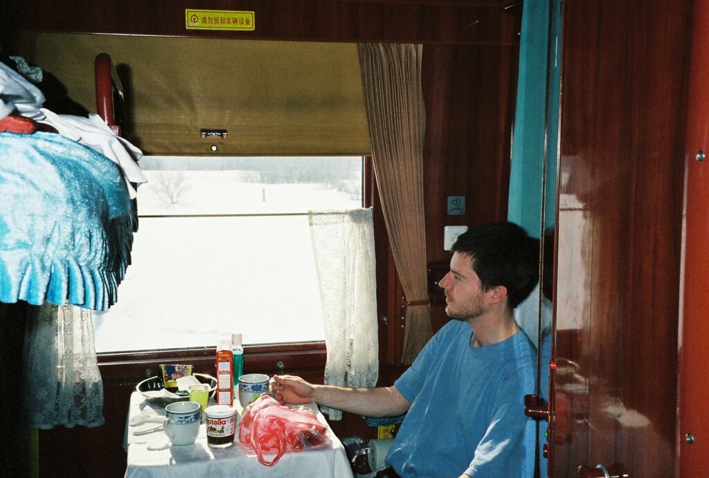 The downside of our wonderful meeting in Novosibirsk is that we have also picked up a new passenger who has moved into the adjacent cabin. We will no longer have the shower cabinet to ourselves. The fact that we will be sharing it with this foul-smelling boor whose traveling companion is a stuffed toy monkey is worse. Our new neighbor – whom I have dubbed ‘Felix’ – has a personal aroma with hints of the dried garlic sausage available from the platform kiosks. With any luck, he will not be traveling all the way to Beijing with us. Even better, he could change his clothes. Failing that, I look fondly upon the stray coal fumes from the furnace that may waft into our cabin.