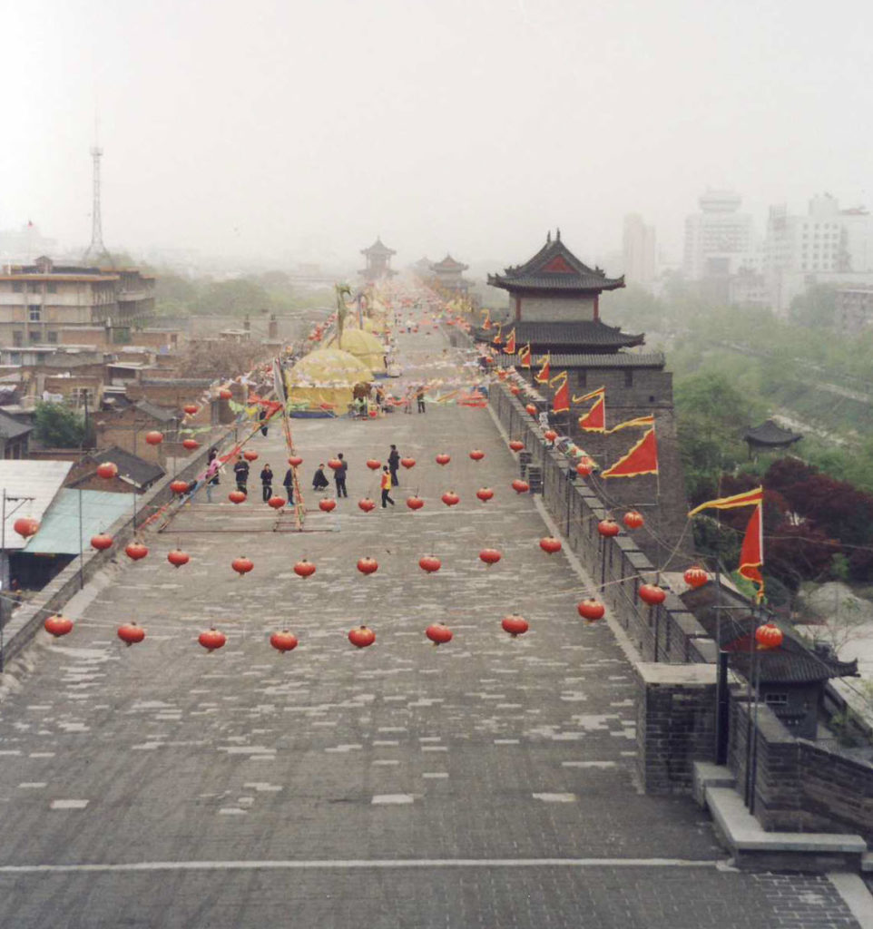 Museum complete, Lucy took us up to the South Gate of the city walls โ the gate we had walked to our first day in Xiโan. She explained that the walls had been earthen ramparts until they were reconstructed in brick during the Ming Dynasty. The walls are quite wide on top and extend around the entire city center for a length of about 9 kilometers. If memory holds, they hold a foot race atop these walls. There is certainly enough space.
