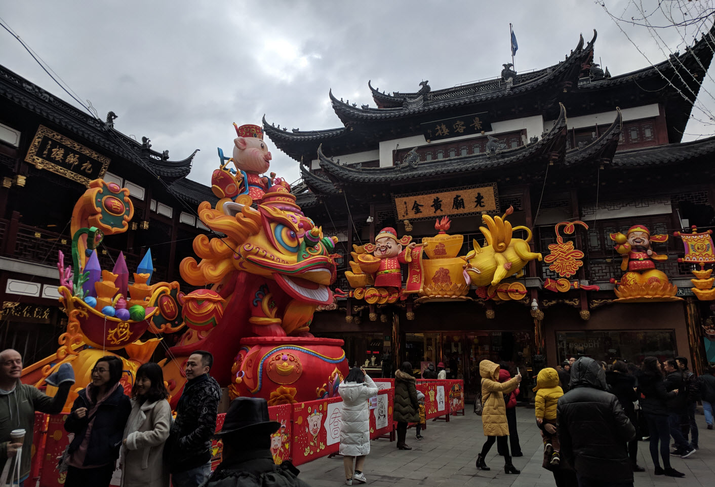 The next day, I wandered the maze of shops surrounding the Yuyuan Garden uncertain that the signposts were actually taking me closer to my desired destination. I paused in front of a colorful display celebrating the upcoming Lunar New Year (and the Year of the Pig) when a woman called to me in English. She held up her cell phone and asked if she could take a selfie with me.