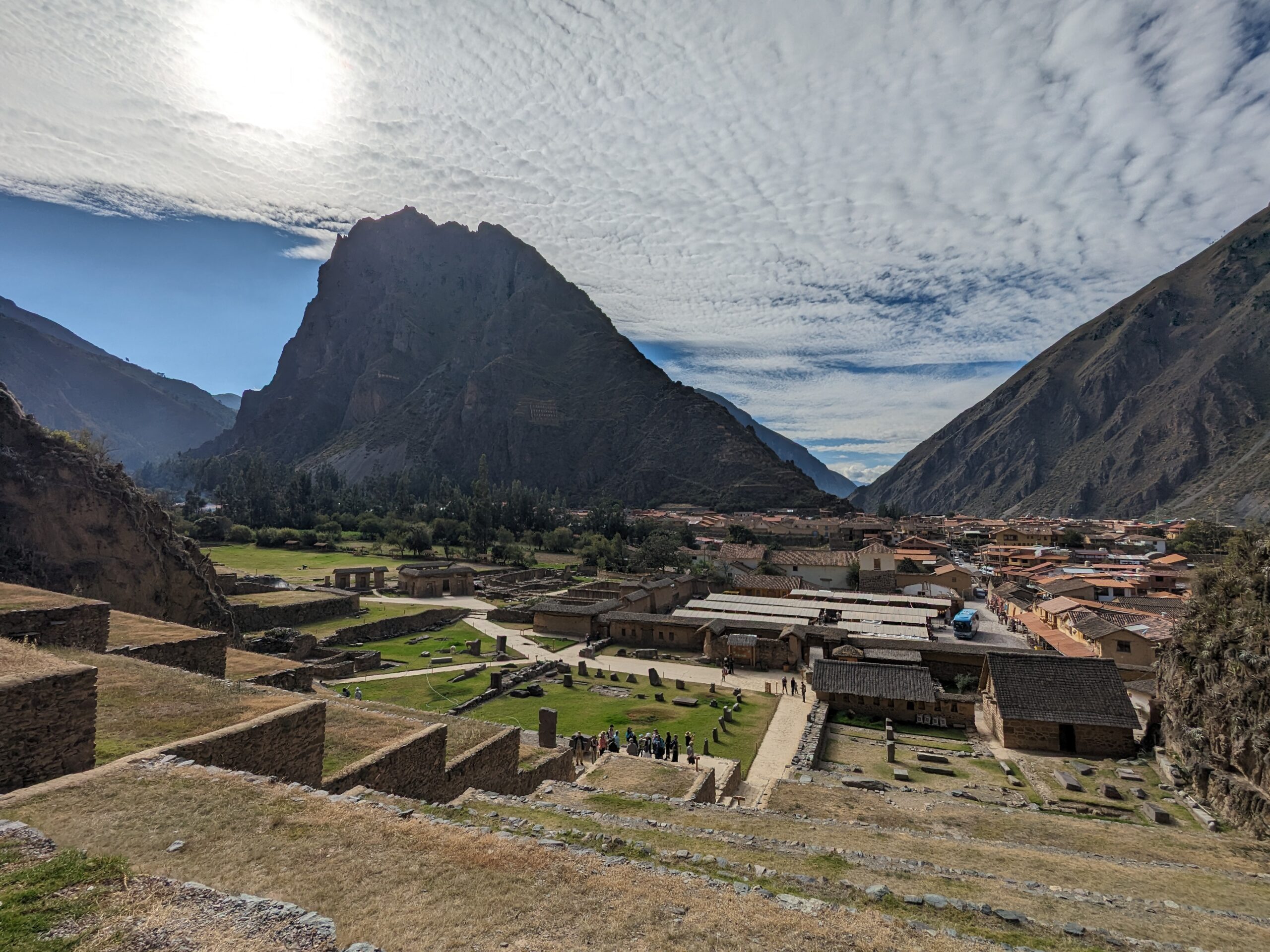 A brief visit to the town of Ollantaytambo before boarding our train to Aguas Calientes1 and Machu Picchu itself. Ollantaytambo is one of the big jumping off points for hiking the Inca Trail. The backpacker crowd is well represented. Our experience was less arduous.