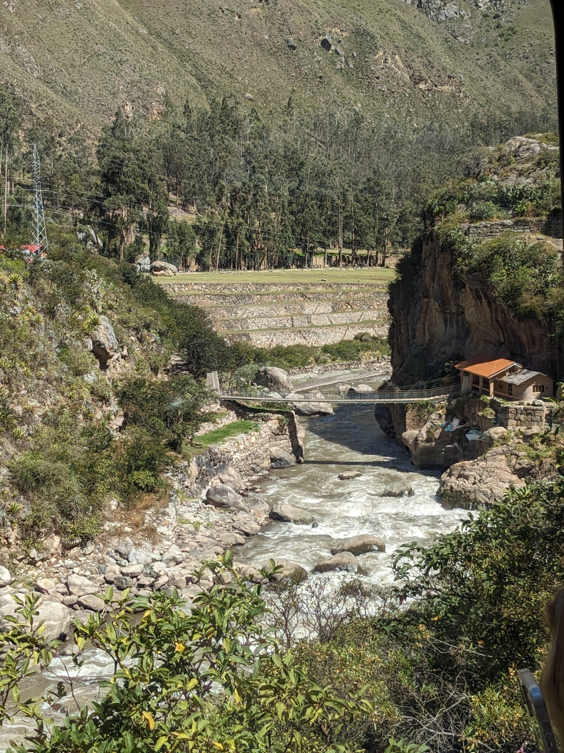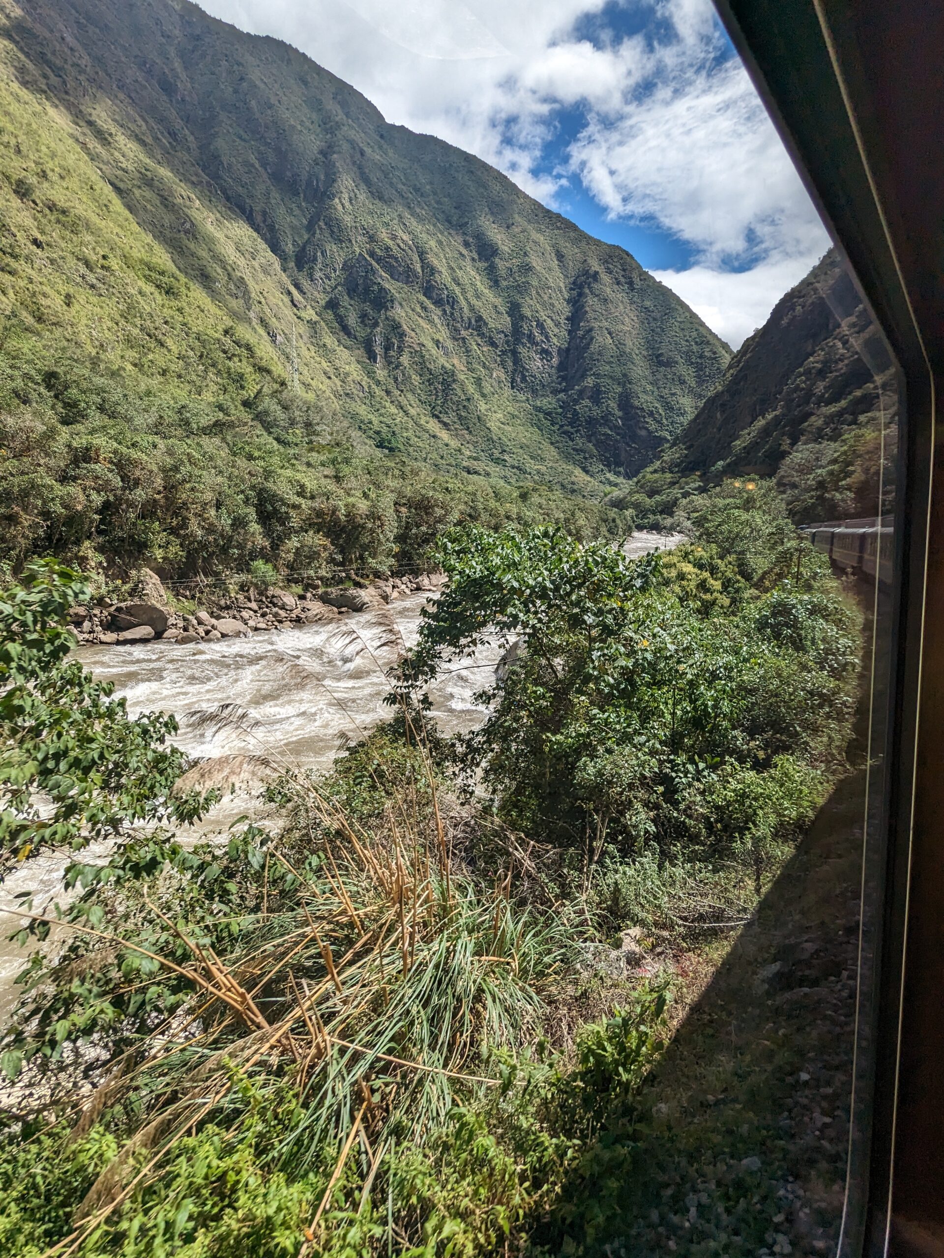 Afterwards, we boarded the train for Aguas Calientes2. From the posh car, the house band serenaded us while we chugged along the Urumbaba. Every so often a backpacker came into view. I did not envy their journey.