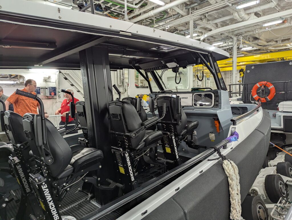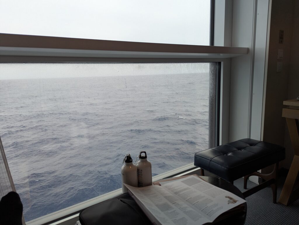 But not always tumultuous. Passengers describe the crossings as experiencing the “Drake Shake” or crossing the “Drake Lake”. Ours was more on the “Lake” end of the spectrum. The seas were not glassy, but they were far from rough. One grows accustomed to walking in a curved path when navigating the hallways.