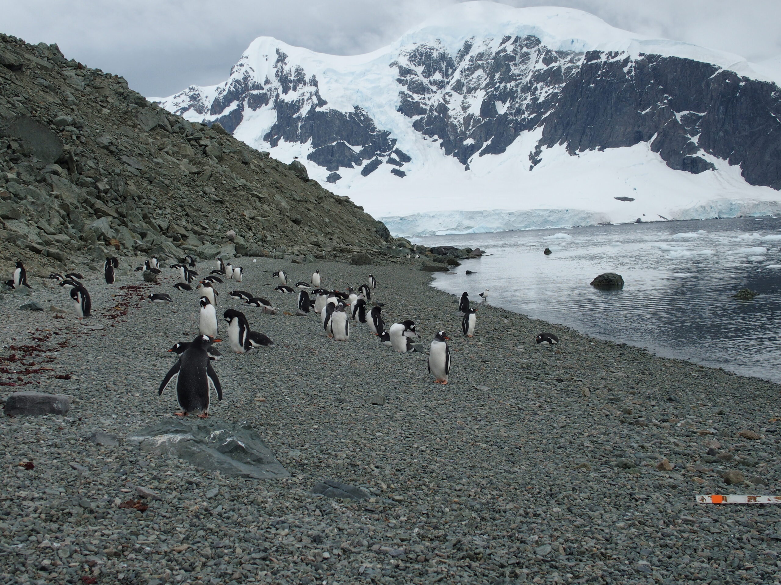 The Expedition Team makes an initial pass of the landing site, drops off the emergency gear, and defines the area we can explore. The wildlife, of course, has no such restriction. The penguins took little notice of us – one proceeded to lie down and begin a nap along the path we were walking – but seemed quite interested in the metal poles the crew used to determine the off-limits area.