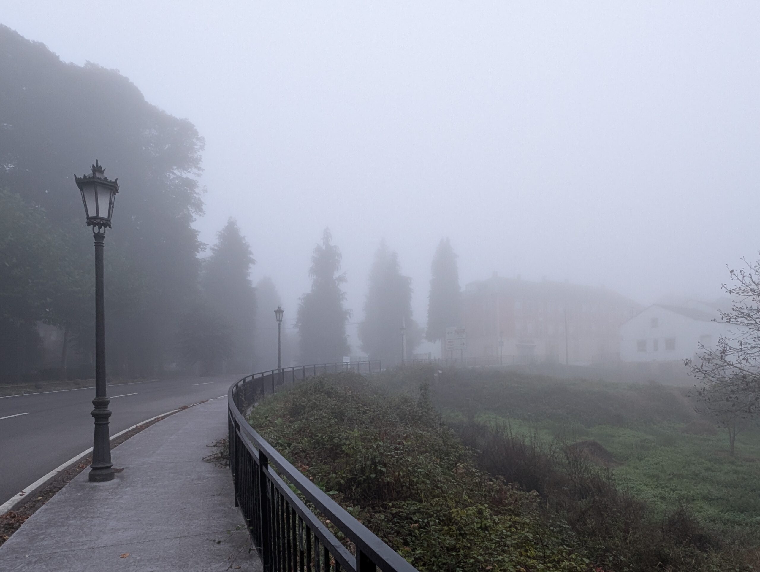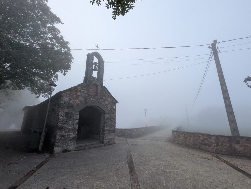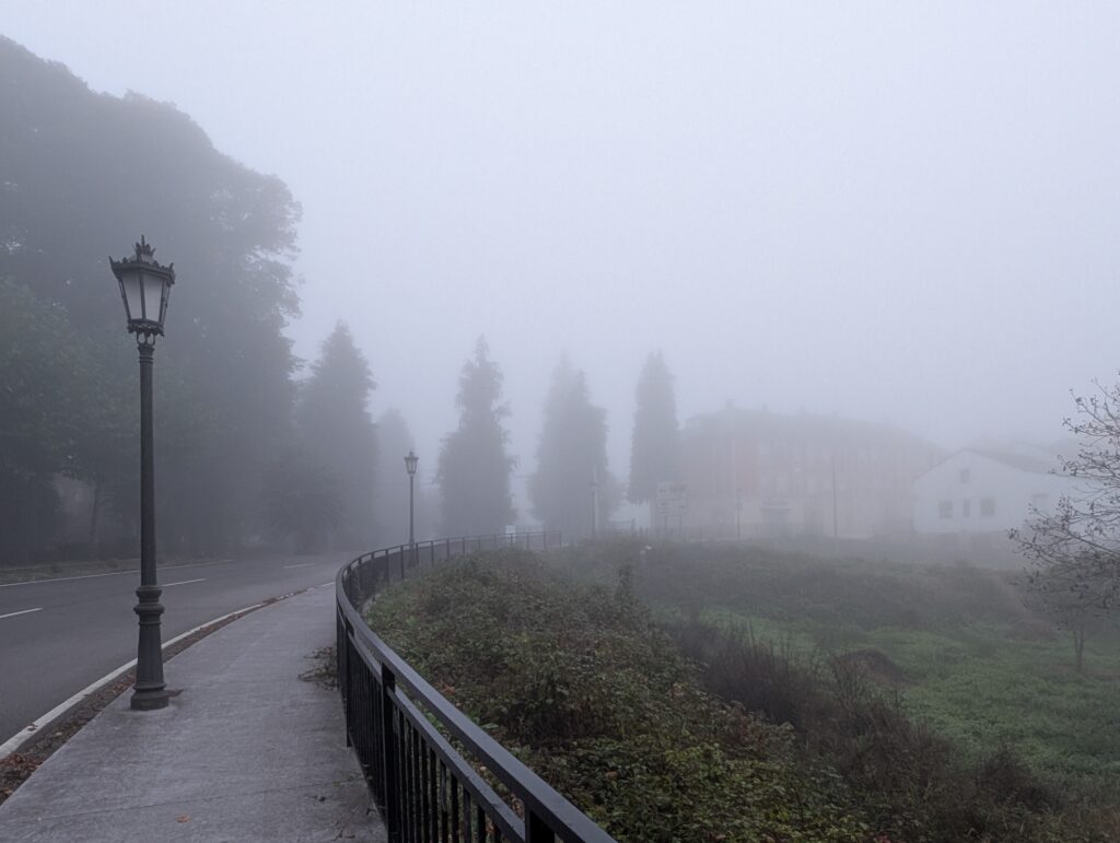 The morning began in the cool mists of Grandas de Salime. All the cloud cover that I observed yesterday from high above the reservoir blanketed the town this morning. I dug out my headlamp, not as much to see the way ahead; I wore it backwards to provide direction for the peregrinos behind me. Crossing roads was the most treacherous. The curves in the road and thick fog provided little warning of oncoming vehicles. The road intersections (almost) always had a Camino marker indicating the route, but they were not consistently placed. The murky lighting made them challenging to see and read as well. Pilgrims tentatively crossing the road – on the edge of being lost – were potential targets for the cars and trucks racing by.