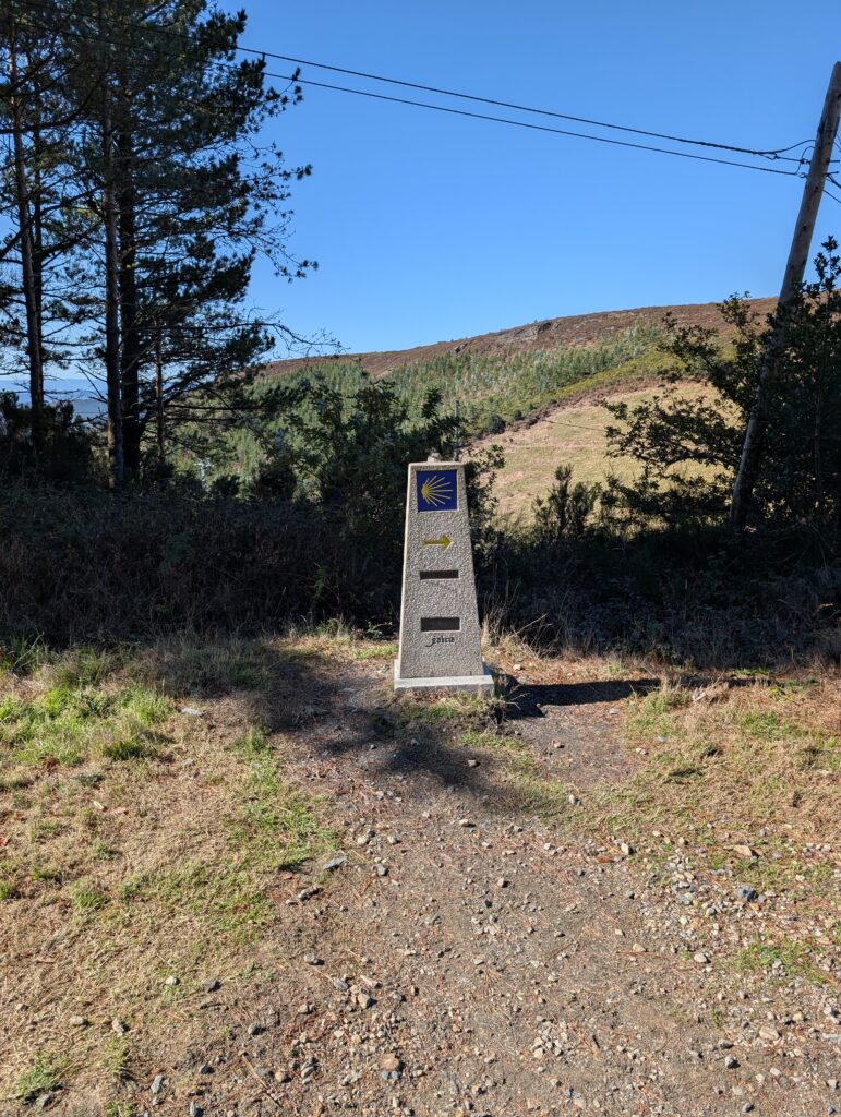 The Galician trail markers are in better condition than those in Asturias. They also have a helpful arrow confirming the correct direction – in Asturias, the challenge was to remember which way the shell ‘pointed.’ An added bonus is that they also count down the remaining distance to Santiago.