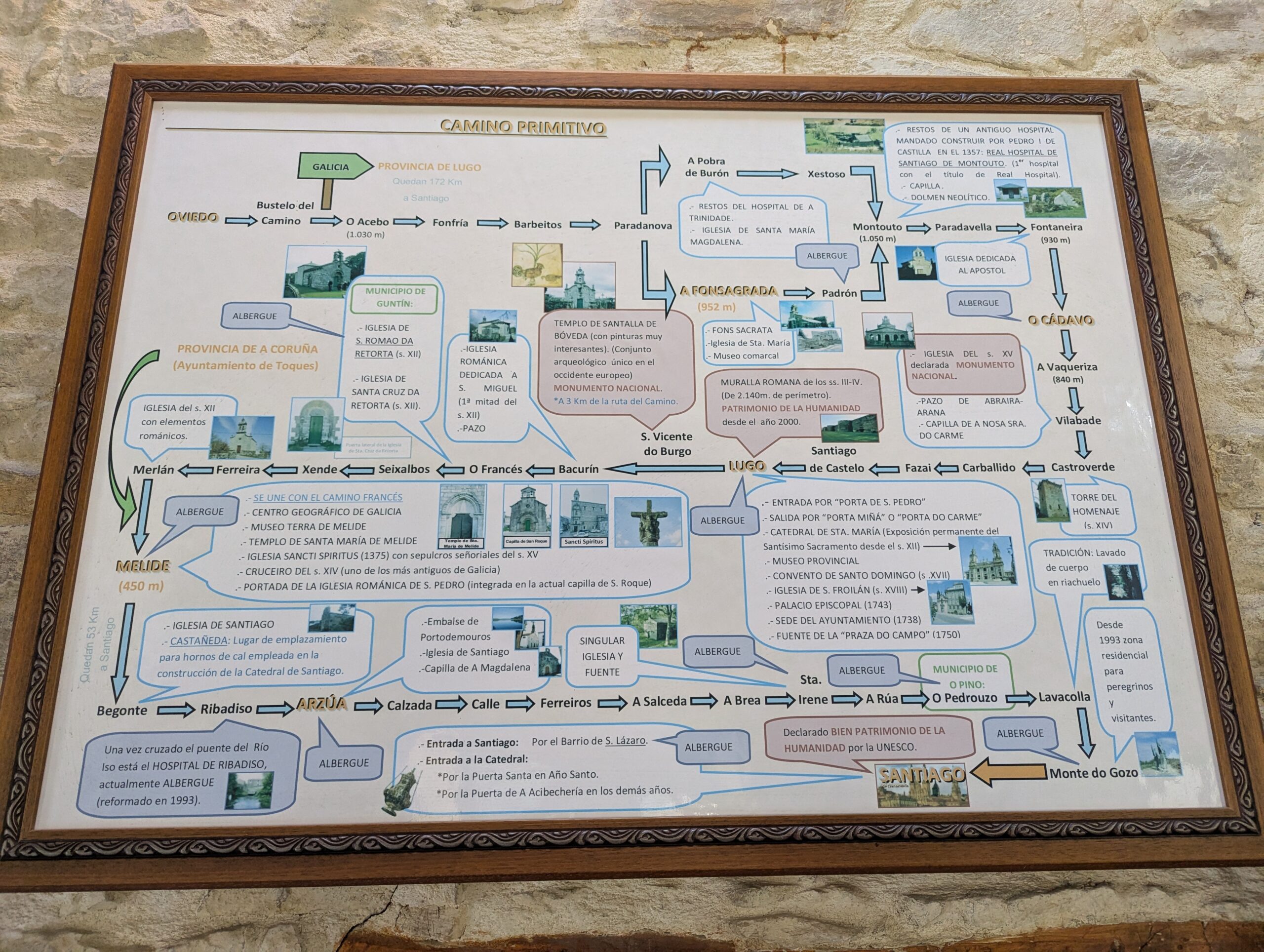 Our pension is fun – lots of framed cartoons celebrate the city and its location on the Camino Primitivo. The church of Santa Maria has pilgrim resources. There is also an Ethnographic Museum that Anna will probably hit tomorrow.