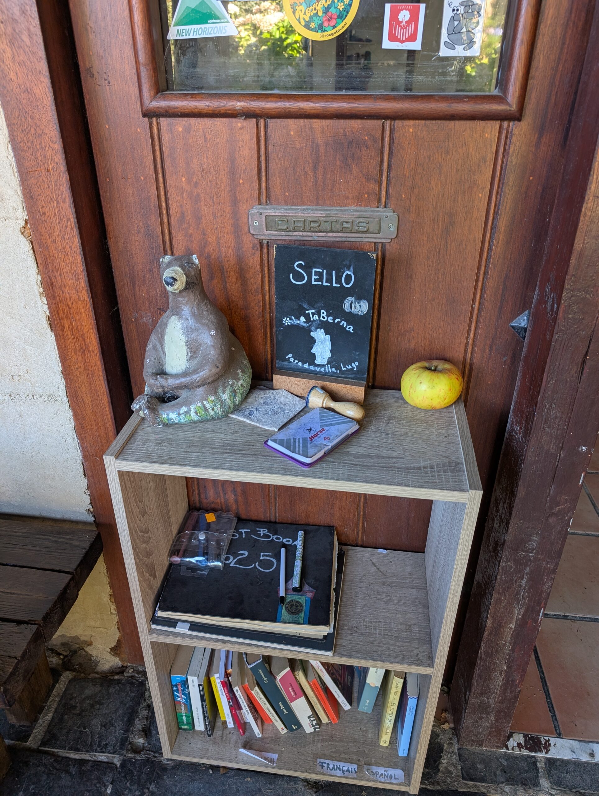 It was a Camino All-Stars today: I saw Swedish Patrick, Nicky, Maya and Team Canada (Roxanne and Lynn) on the road today. I also met three Americans (Carmen, Melissa, and Michelle) when I stopped for lunch. The Americans were staying at our pension and insisted Anna take one of their extra pair of socks for her feet. Most of our cohort are aware of Anna’s injuries and check in on how she is feeling.
