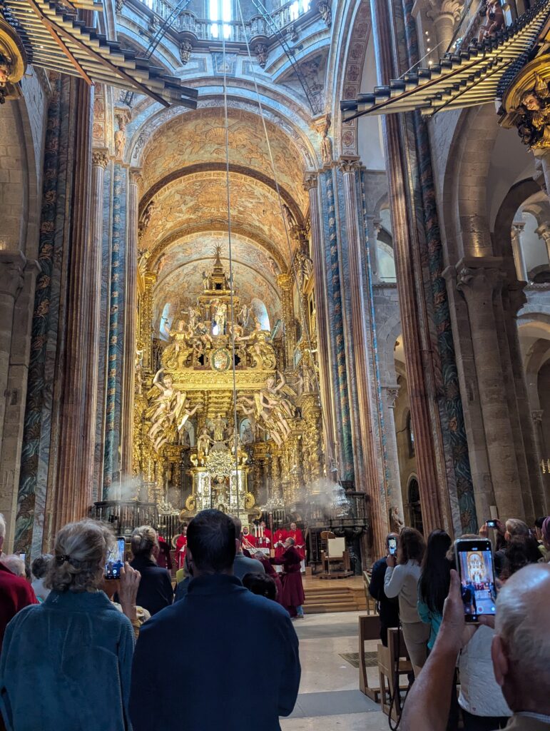 They asked attendees to not film during the service. Not surprisingly, everyone’s cell phones lit up to film the Botafumiero. Being mildly responsible-minded folks and rule-followers, we only managed a snap or two.